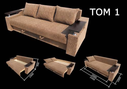 ГАБАРИТНЫЕ РАЗМЕРЫ: ДЛИНА 2450 мм, ВЫСОТА 900 мм, ГЛУБИНА 1000 мм. СПАЛЬНОЕ МЕСТО: ШИРИНА 1500 мм, ДЛИНА 2000 мм, ВЫСОТА 450 мм. В НАПОЛНЕНИИ ИСПОЛЬЗОВАН: ПЕНОПОЛИУРЕТАН, СОСНОВЫЙ БРУС И ЛАТОФЛЕКС. СПОСОБ РАСКЛАДЫВАНИЯ "ЕВРОКНИЖКА"